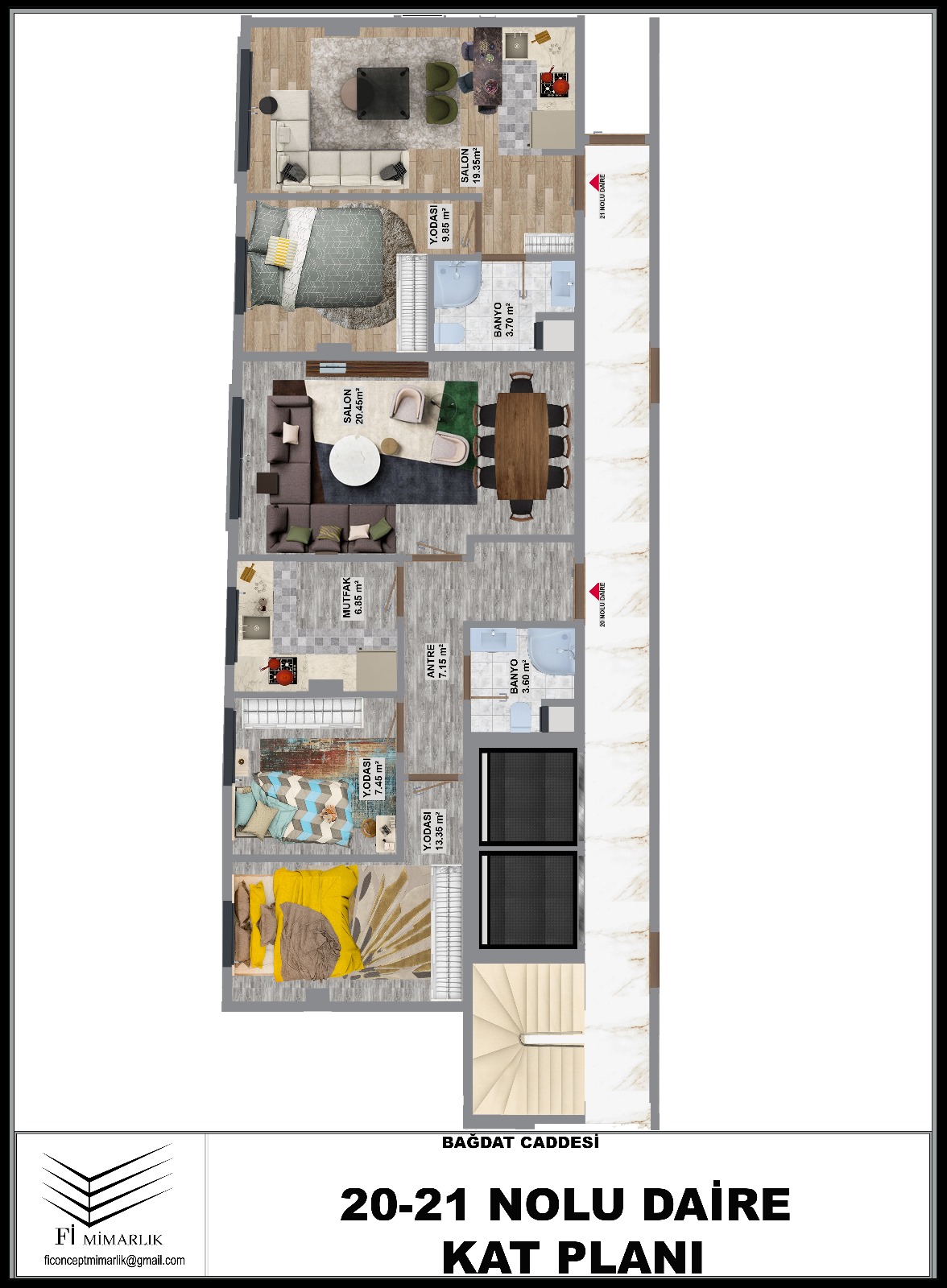 Toplamda 33 daire ve 2 dükkândan oluşan proje, yaklaşık 4.500 m² inşaat alanı üzerinde yükselmektedir. Projede, çağdaş şehir yaşamına uygun konut tasarımlarının yanı sıra, bölgeye değer katan ticari alanlara da yer verilmiştir.