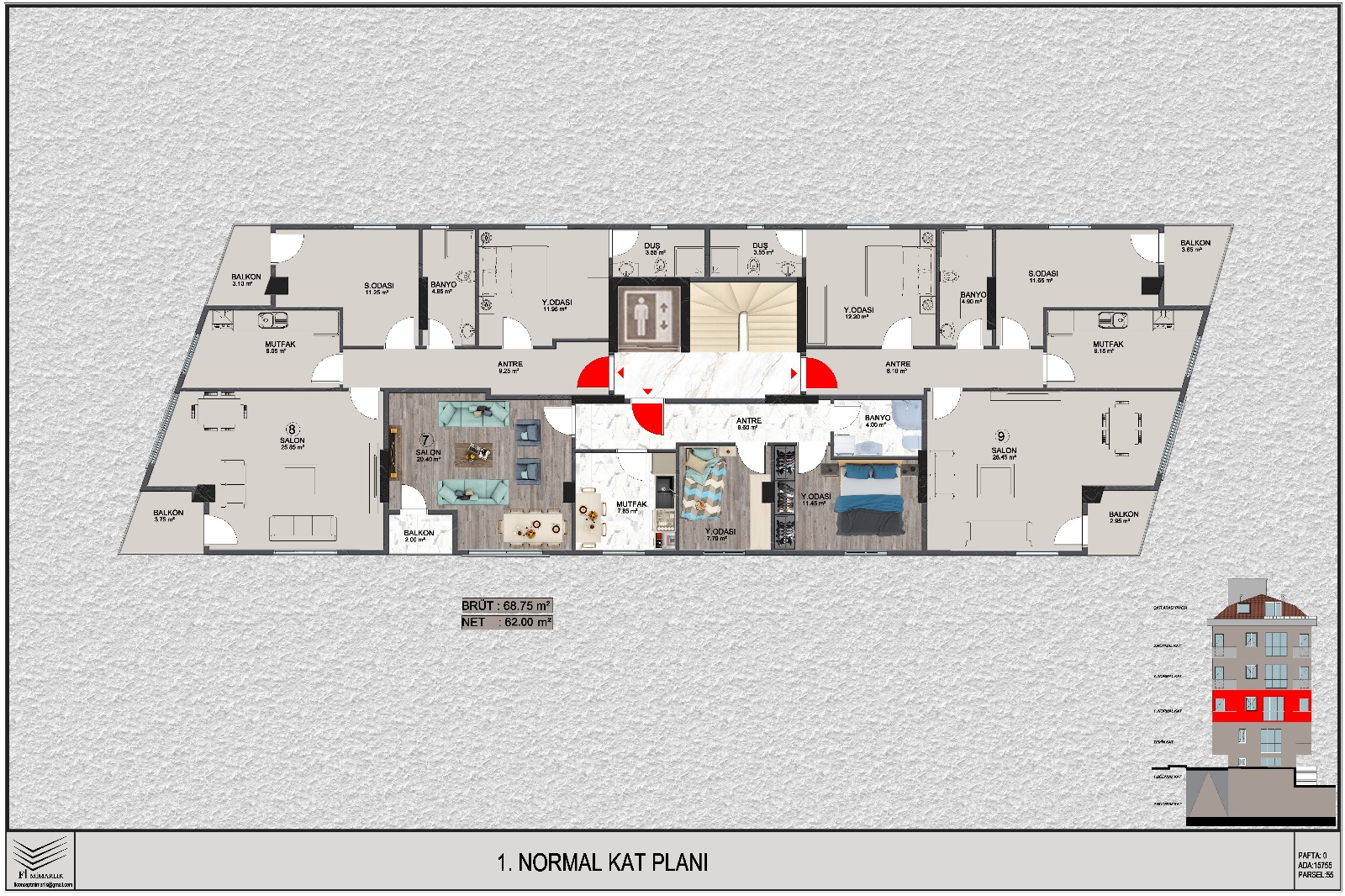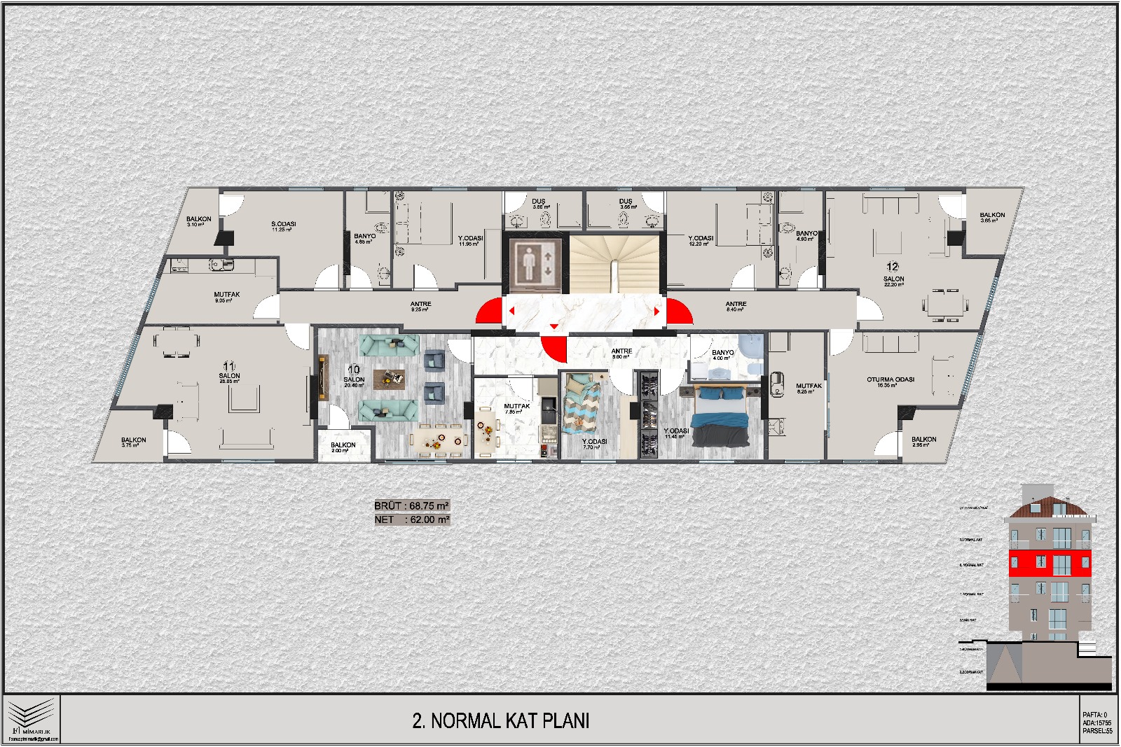 Yaklaşık 2.000 m² inşaat alanı üzerinde inşa edilen proje, toplam 16 daireden oluşmaktadır. Ferah daire planlamaları, geniş balkonlar ve çağdaş mimari çözümleriyle sakinlerine konforlu bir yaşam alanı sunmayı hedeflemektedir.